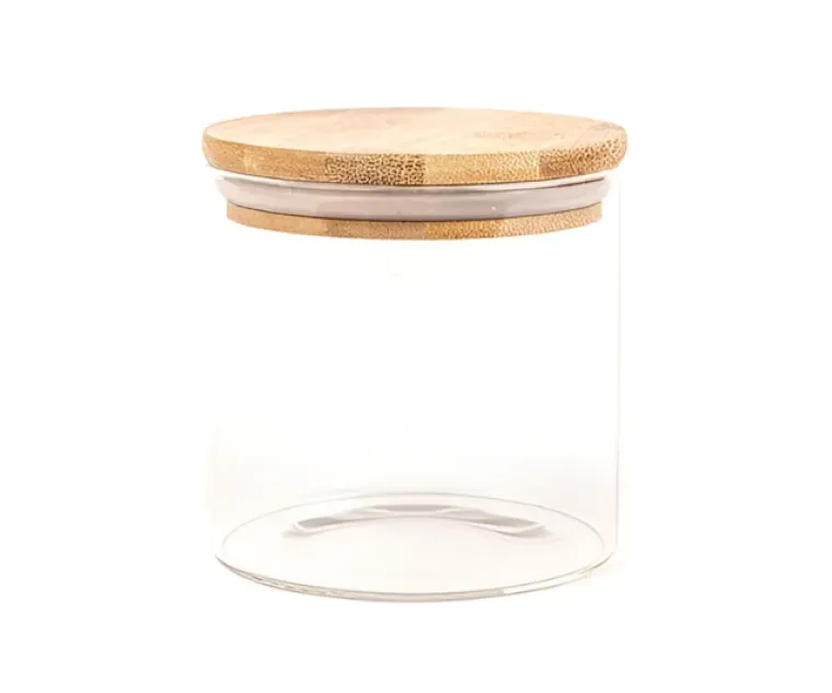 Frasco Vidrio Tapa Bambu 650 ml. 10 x 10 Cod. YX-10