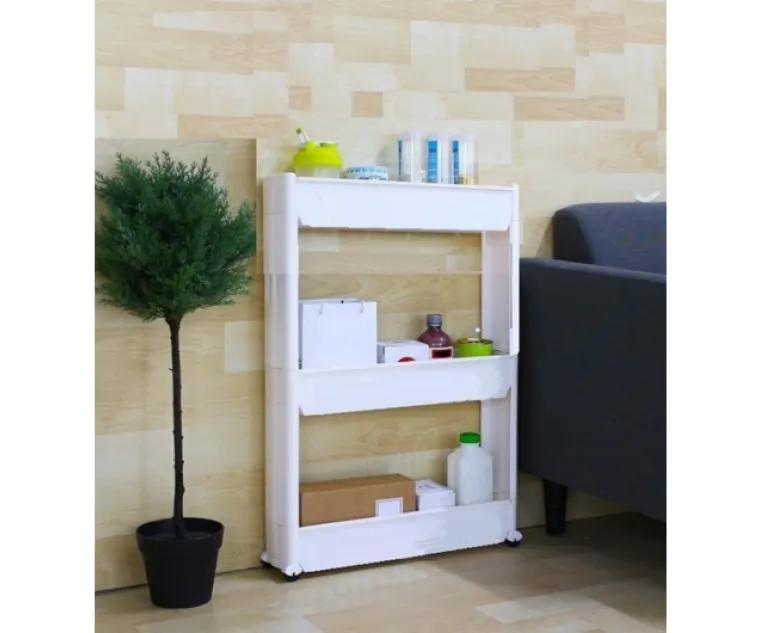 Mueble Estanteria Organizador Plást. 3 Estantes C/Ruedas 12 x 70 x 45 Especial Espacios Angostos Cod. G1973
