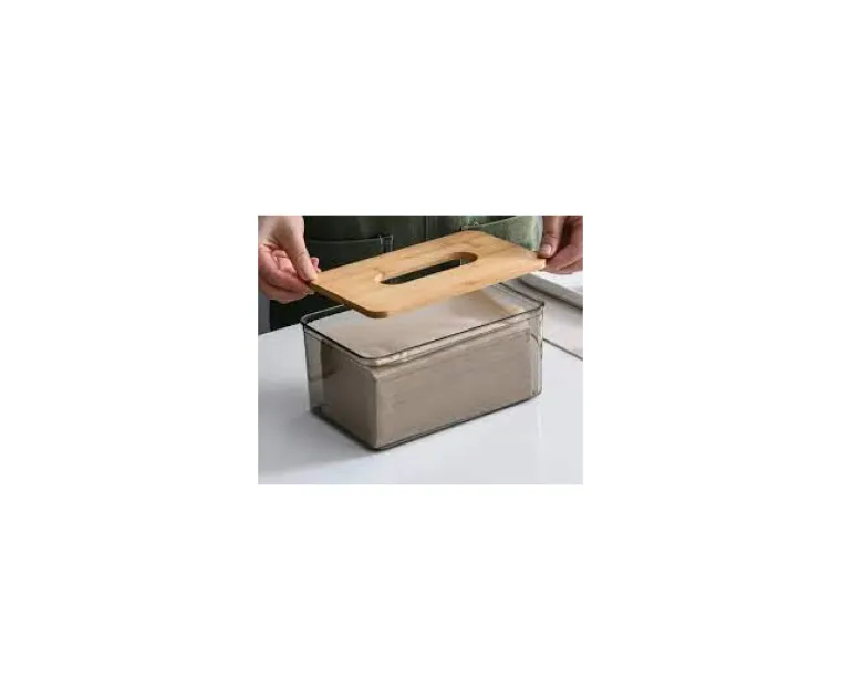Porta Pañuelos Acrilico c/Tapa Bamboo 19 x 12 x 10 Cod. HA4674