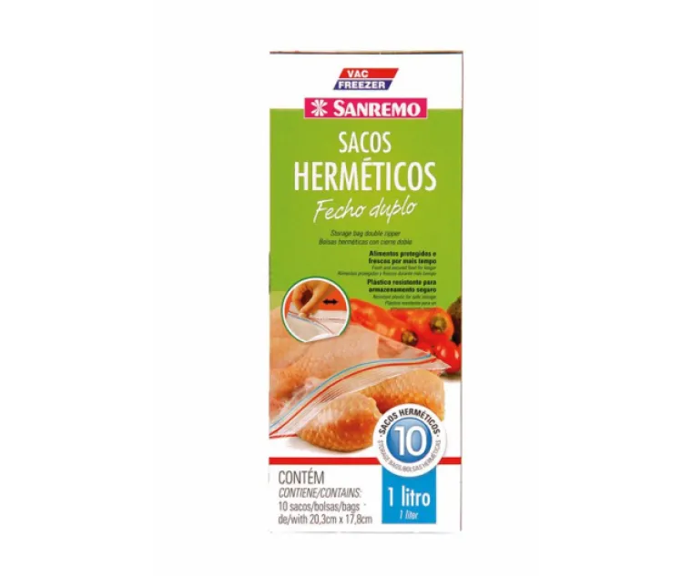 Bolsa SAN REMO Hermetica C/Cierre Doble Cap. 1 lt. X 10 Unidades Cod. SR373