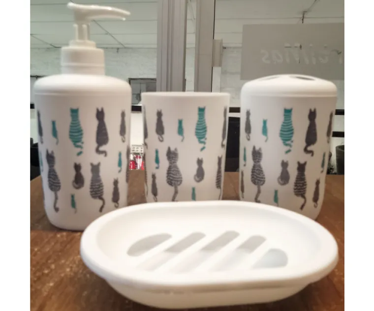 Conjunto Baño BUKARA 4 Piezas; jabonera, porta cepillo dientes, vaso, dispensador jabon liquido. Varios diseños Cod. BUKARASET