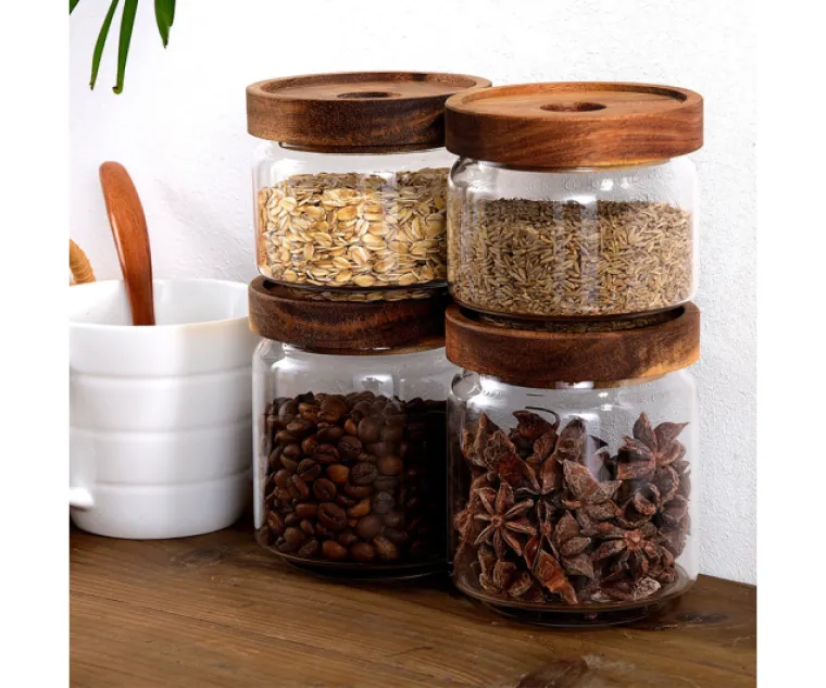 FRASCO VIDRIO SELECTA TAPA MADERA ACACIA 400 ML. 9,5 CMS. DE ALTO X 9 CMS. DE DIAMETRO COD. 569002XS