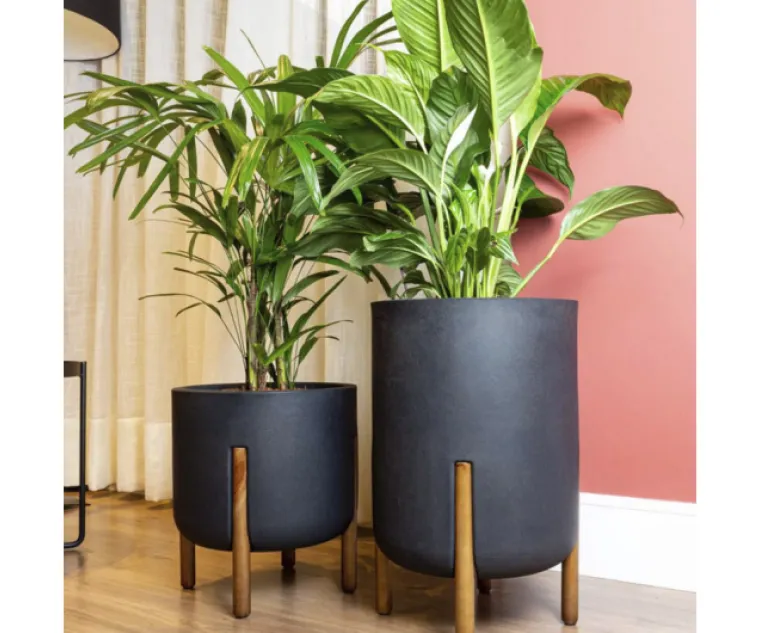 Maceta Rotomoldeado JAPI C/Patas Madera 33 cms. x 51 cms de alto Cod. JVCD34