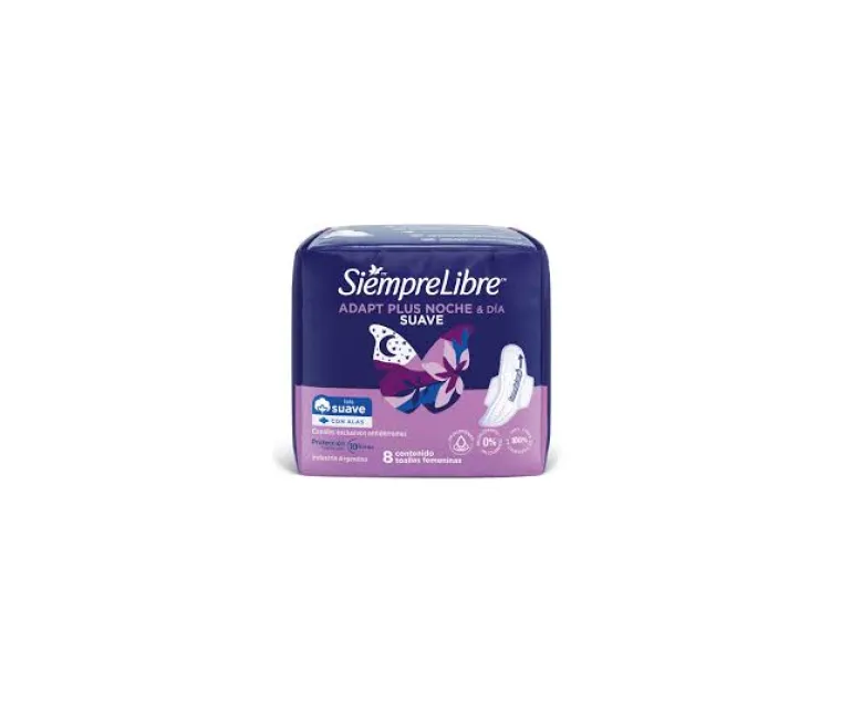 Toalla Femenina SIEMPRE LIBRE Adapt Plus Noche y Dia 8 Unidades Cod. 7790010570862